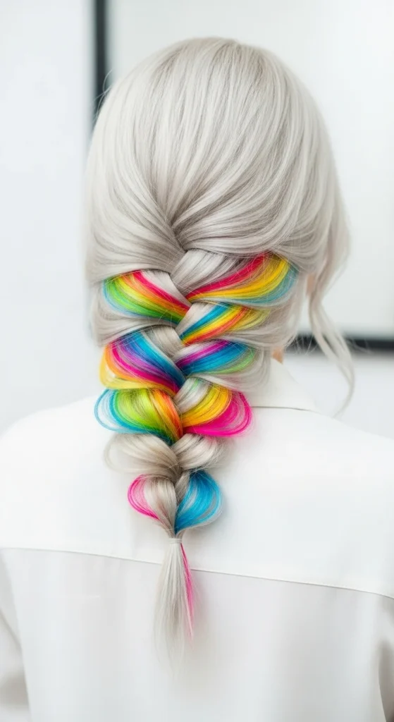 Unlike traditional highlights or balayage, where colors blend throughout your entire head, the peekaboo method keeps all the excitement underneath. This placement makes it ideal for professionals who need to maintain a conservative appearance at work while still enjoying creative hair color during their personal time. Simply wear your hair down for a natural look, or pull it up to reveal your hidden rainbow.