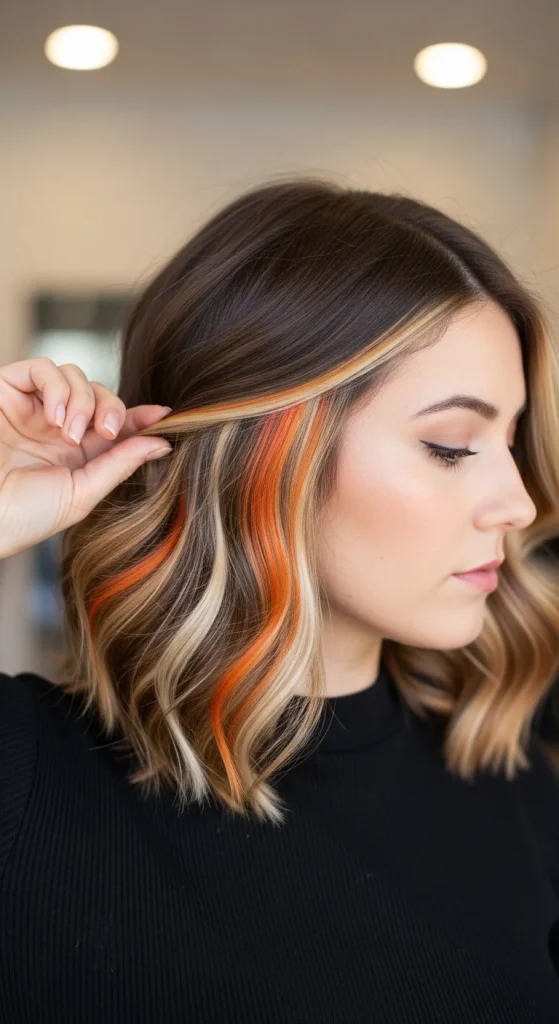 This option suits those with warm skin undertones and natural brown or auburn hair. The colors blend seamlessly with your existing shade while providing that exciting pop of hidden color when revealed.