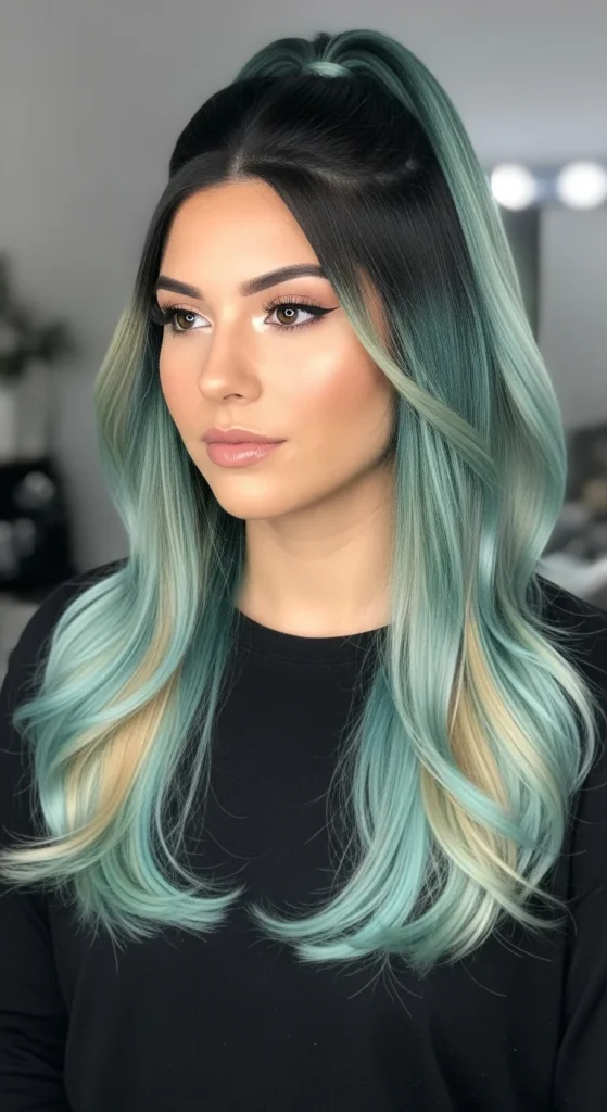 For those who love cool tones, this combination brings the ocean to your hair. Deep teal, seafoam green, and touches of sandy blonde create an underwater fantasy hidden beneath your top layer. This option works beautifully with dark brown or black base colors, creating stunning contrast.