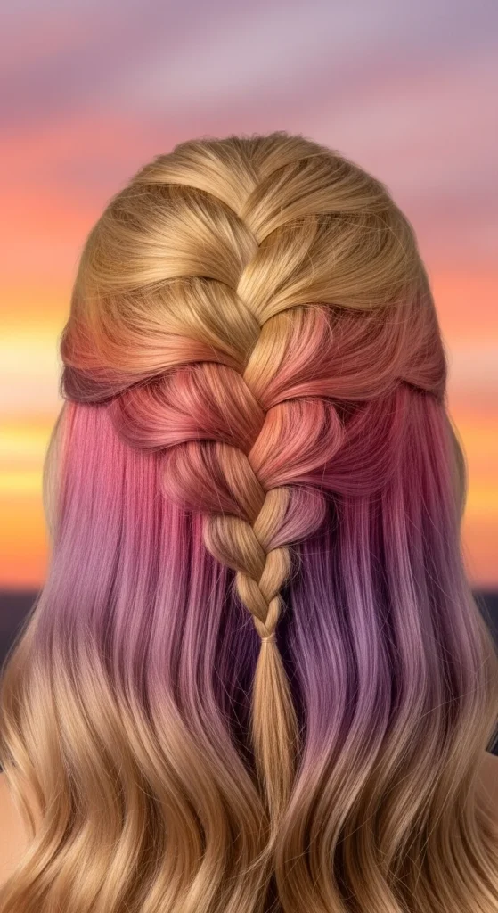 This dreamy option works exceptionally well with blonde or light brown base colors. The soft pastel tones peek through subtly during everyday wear but make a dramatic statement when styled up or braided.