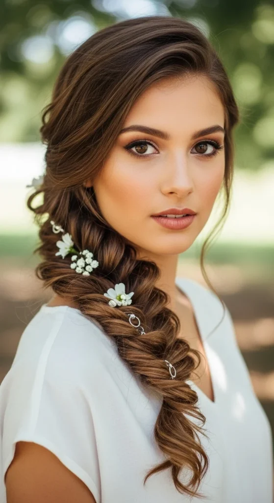 A classic three-strand braid positioned to one side looks effortlessly chic. Gather all your hair to one side of your neck and divide it into three equal sections. Cross the right section over the middle, then the left section over the new middle. Continue until you reach the ends and secure with an elastic.