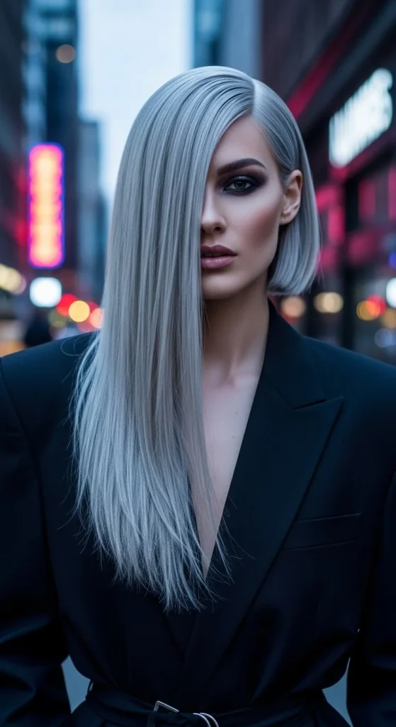 This long straight haircut particularly suits oval and oblong face shapes. It elongates features and creates a striking, editorial look. Many fashion-forward individuals choose this style for its clean, minimalist aesthetic.