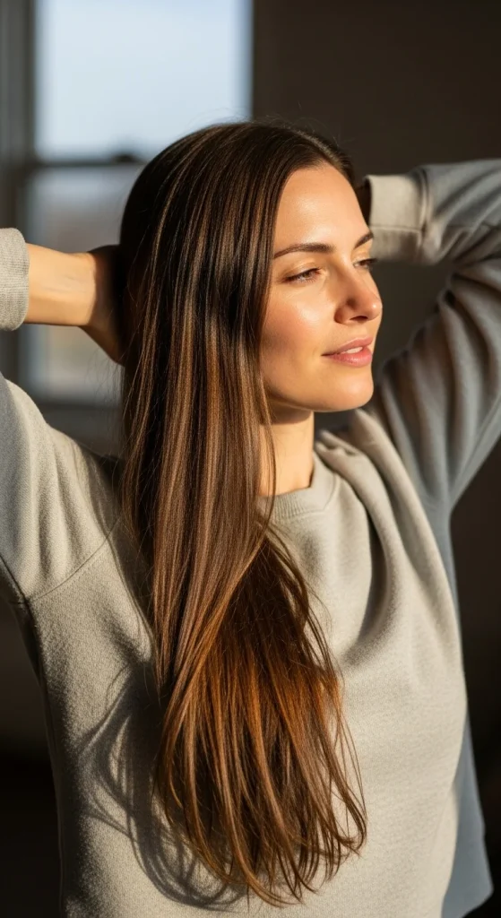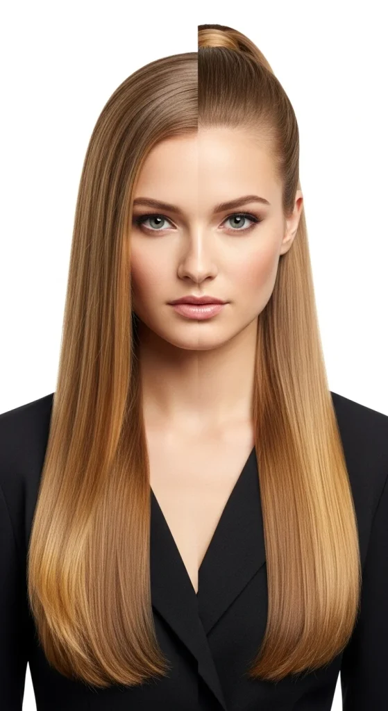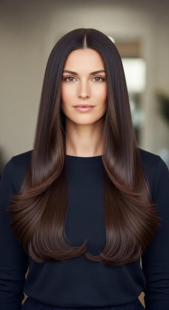 This finish works with any long straight haircut style. It elevates simple cuts to salon-worthy looks. The investment in hair health pays off with stunning, head-turning results.