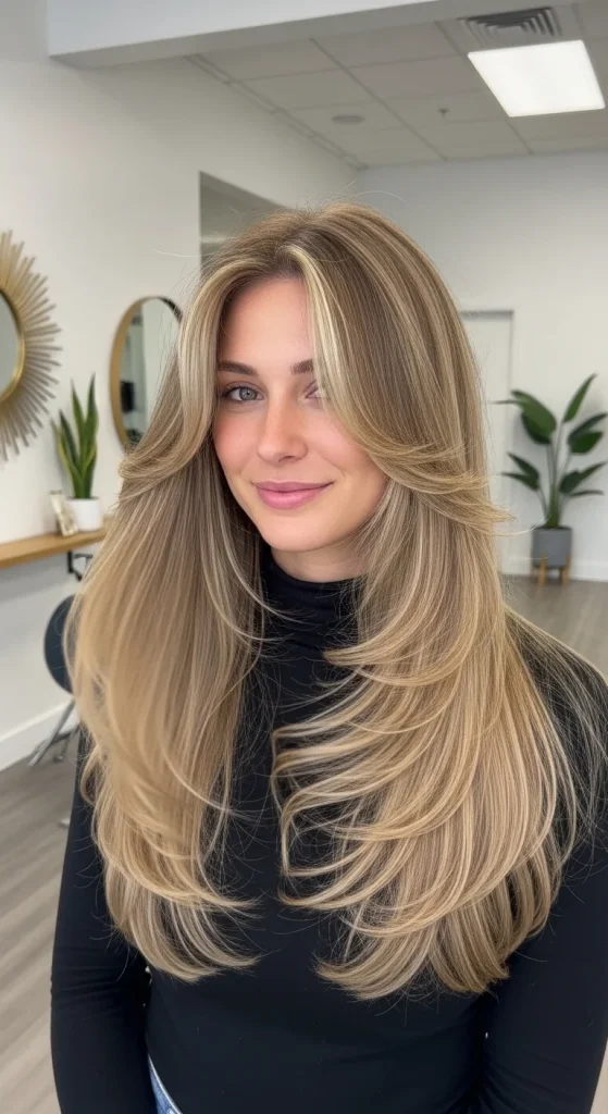 Face-framing layers add dimension and movement to straight hair without sacrificing length. These layers start around the chin or cheekbone and gradually blend into the rest of your hair. They create a soft, romantic effect that flatters almost everyone.
