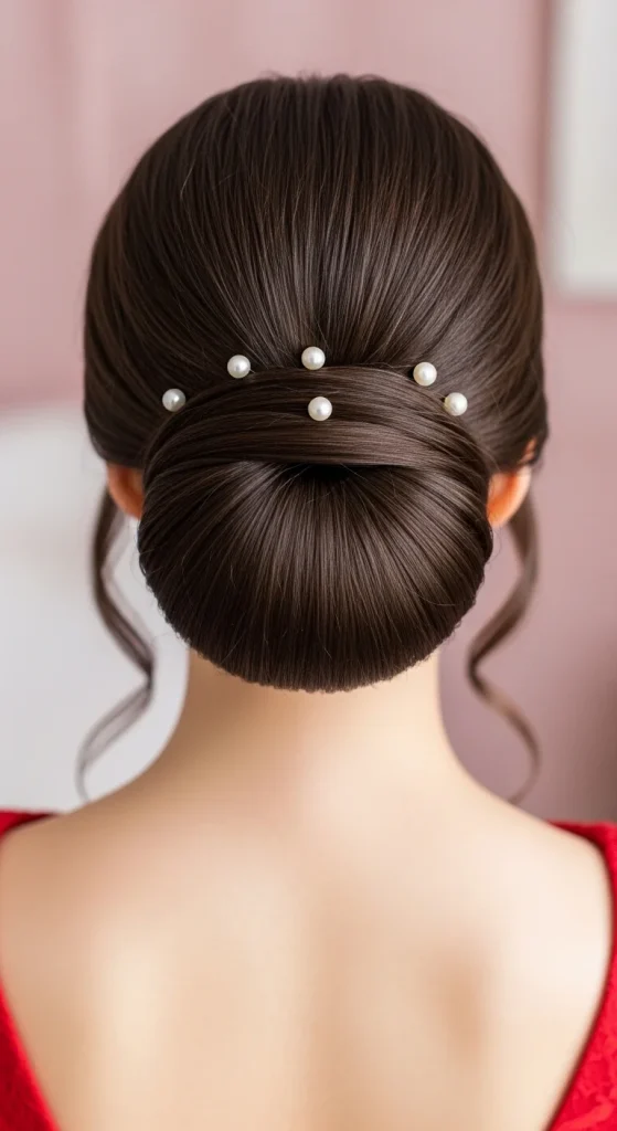 Nothing says sophistication quite like a perfectly executed low bun. This style elongates your neck and showcases statement earrings beautifully, making it ideal for elegant Valentine’s Day hairstyles.