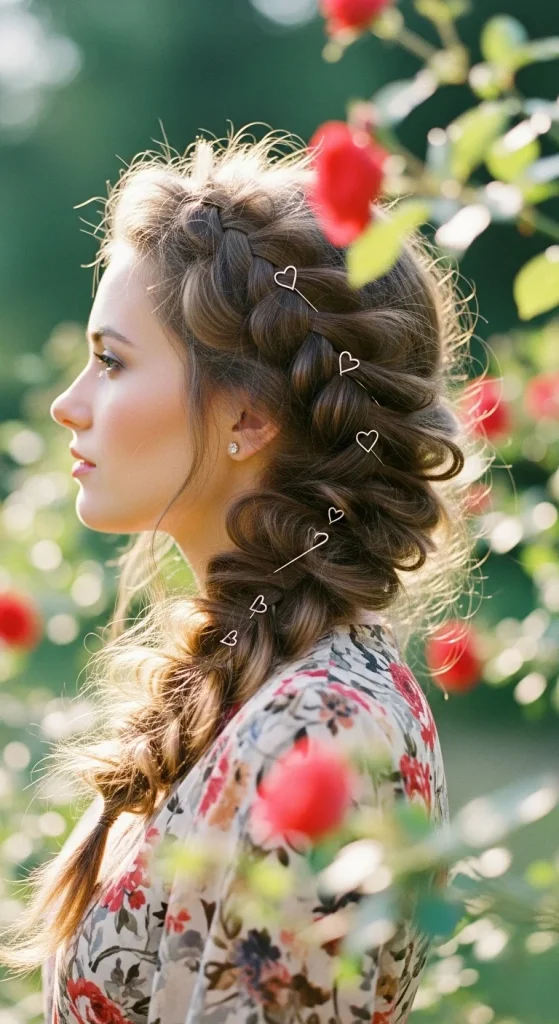 The messy side braid strikes the perfect balance between polished and relaxed. This approachable style works wonderfully for Valentine’s Day hairstyles that require minimal fuss with maximum impact.
