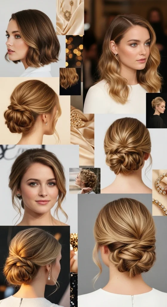 These trendy hairstyles work on medium to long hair lengths and suit every face shape. The low bun transitions perfectly from office settings to evening events with minimal adjustments.